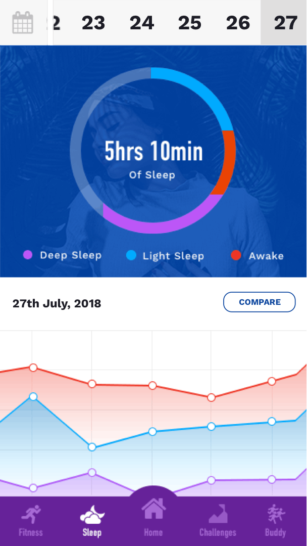 With the growing importance of fitness and health across the globe, Titan was looking to launch its fitness band ‘SF Rush’ to help individuals, (primarily 15-30 years of age) to track their activity and sleep patterns. Users would be able to do this via a mobile application which would connect to the fitness band to achieve this. Being aware of the strong competition in this segment, the core challenge defined was to design for stickiness and to form a lasting habit amongst users.